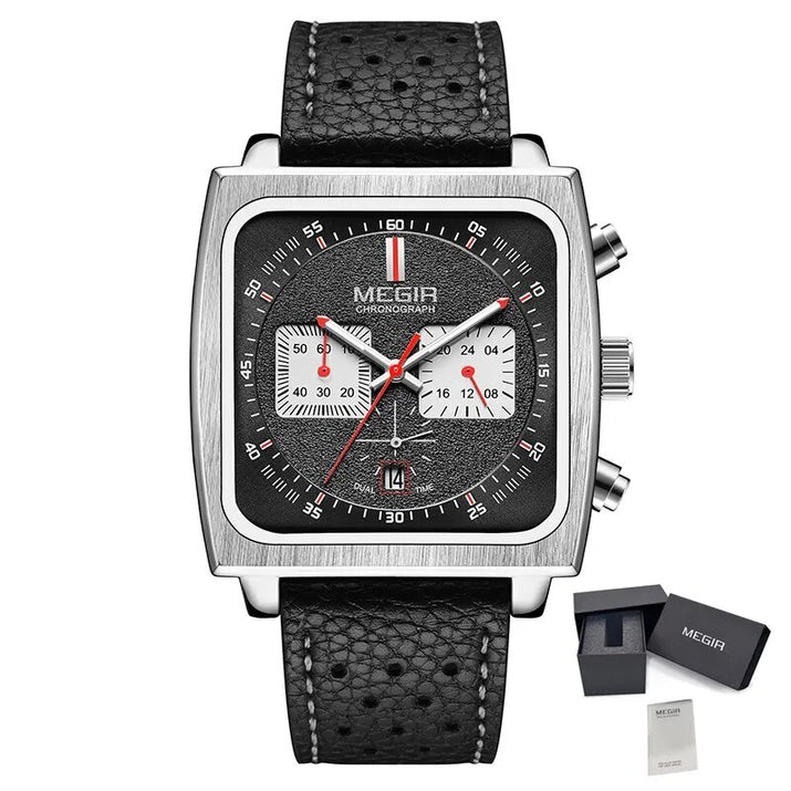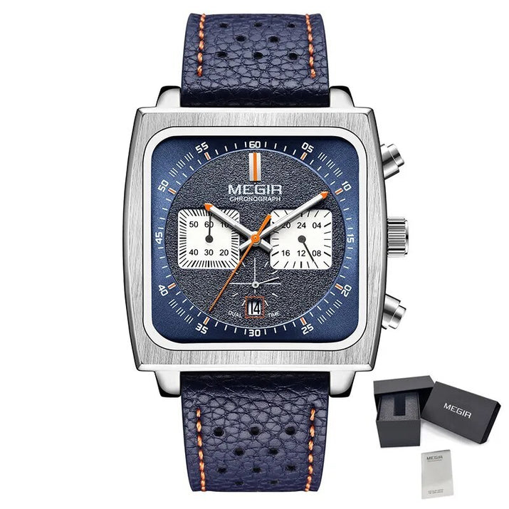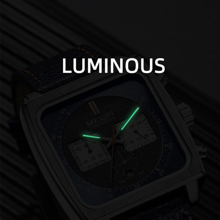 MEGIR 2022 Analogue Watch Men Top Brand Fashion Luxury Rectangle Quartz Military Watches Waterproof Luminous Leather Strap