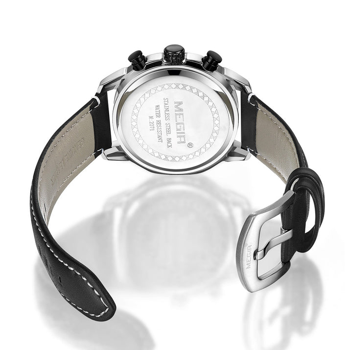 MEGIR Fashion Mens Military Sports Watches Luxury Leather Quartz Business Watch Chronograph Waterproof Luminous Date Wristwatch