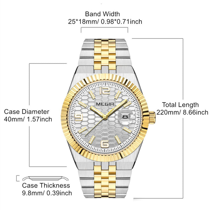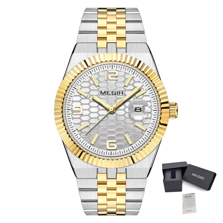 MEGIR Original Men Business Leisure Watches Stainless Steel Bracelet Quartz Wristwatch Waterproof Luminous Date Clock Reloj Hombre 1101